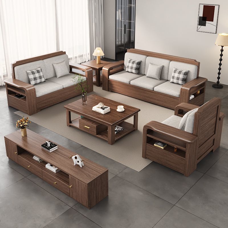 Sofa Kayu Solid Kombinasi Kayu Walnut Musim Dingin dan Musim Panas Penyimpanan Penggunaan Ganda Guifei Unit Besar dan Kecil Perabot Ruang Tamu Modern Sederhana