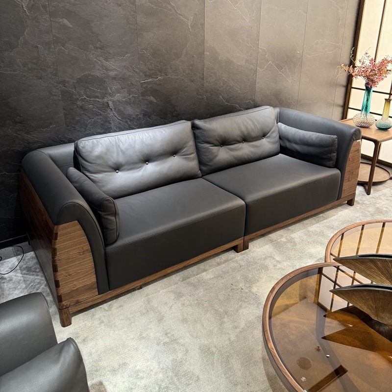 Sofa Kulit Asli Kayu Walnut Hitam Amerika Utara Gaya Song Estetika Kantor Gaya Italia Perabot Eropa Utara untuk Empat Orang