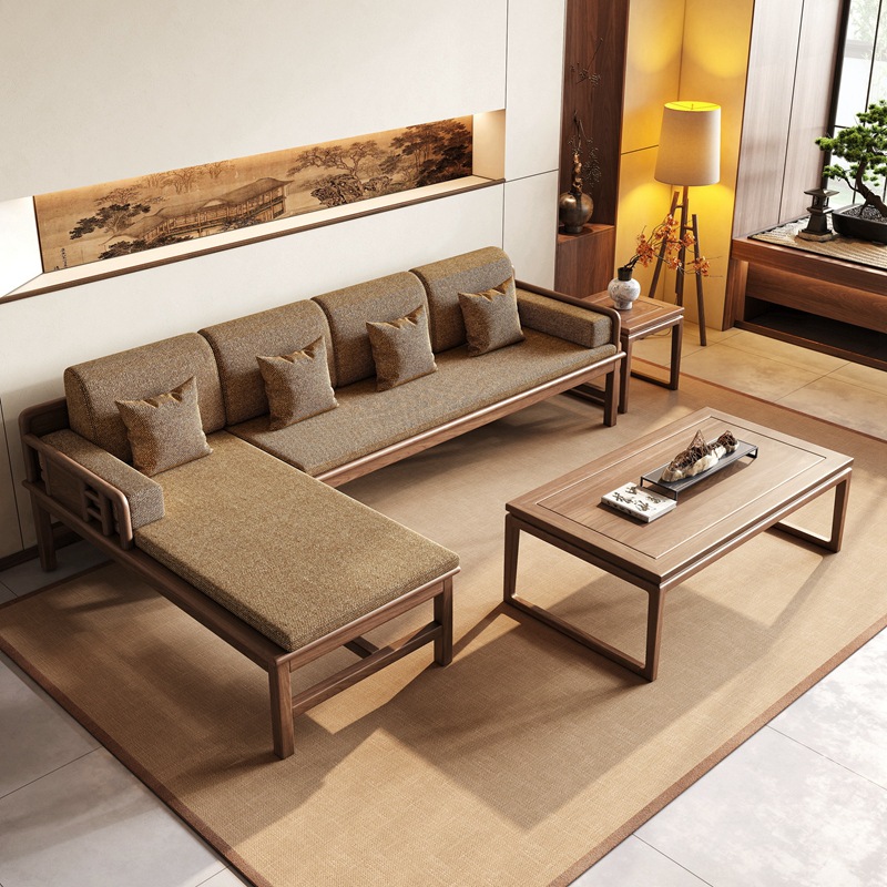 Gaya Tiongkok Baru Amerika Utara Kenari Hitam Model L Sudut Sofa Selir Gaya Song Estetika Zen Kantor Perabot Kayu Solid