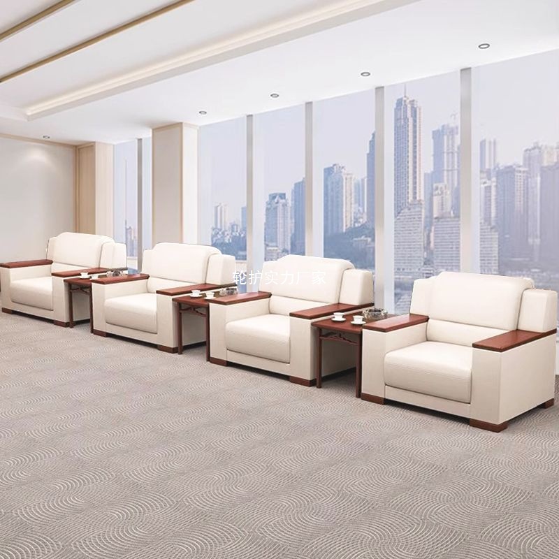 Sofa Pertemuan Ruang Pertemuan Ruang Tamu Penerimaan VIP Bisnis Modern Sederhana Sofa Kulit Tunggal Kombinasi Meja Kopi