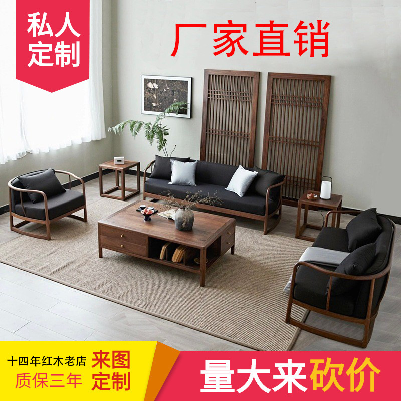 Sofa kombinasi kayu padat kenari hitam Amerika Utara kain minimalis modern ruang tamu Villa ruang teh sofa empat orang