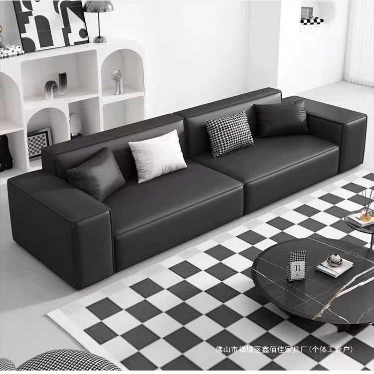 Sofa Warna Hitam Mewah Ringan Gaya Italia Sofa Kombinasi Potongan Tahu Lurus Seni Kulit Minimalis untuk Penerimaan Kantor Ruang Tamu Modern