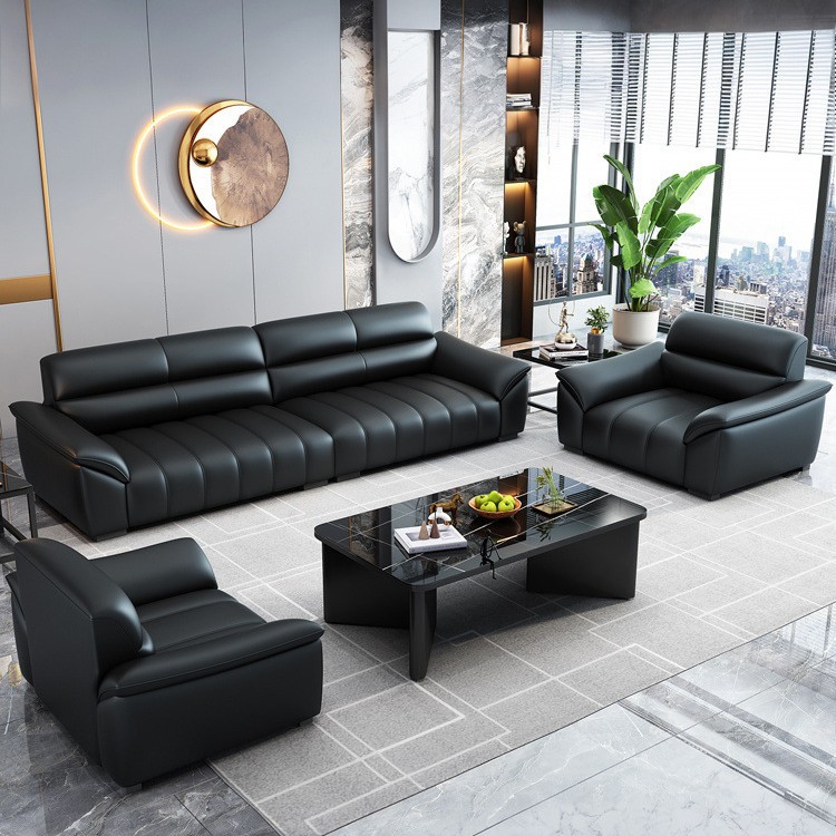 Sofa Kantor Kulit Asli Setelan Kombinasi Meja Kopi Tiga Orang Santai Resepsi Bisnis Sederhana Produsen Seni Kulit
