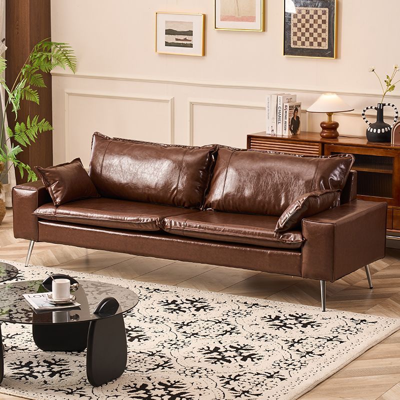 Sofa Kulit Asli Gaya Pertengahan Sofa Lurus Warna Karamel Retro Gaya Amerika Sofa Kulit Lilin Telinga Gajah