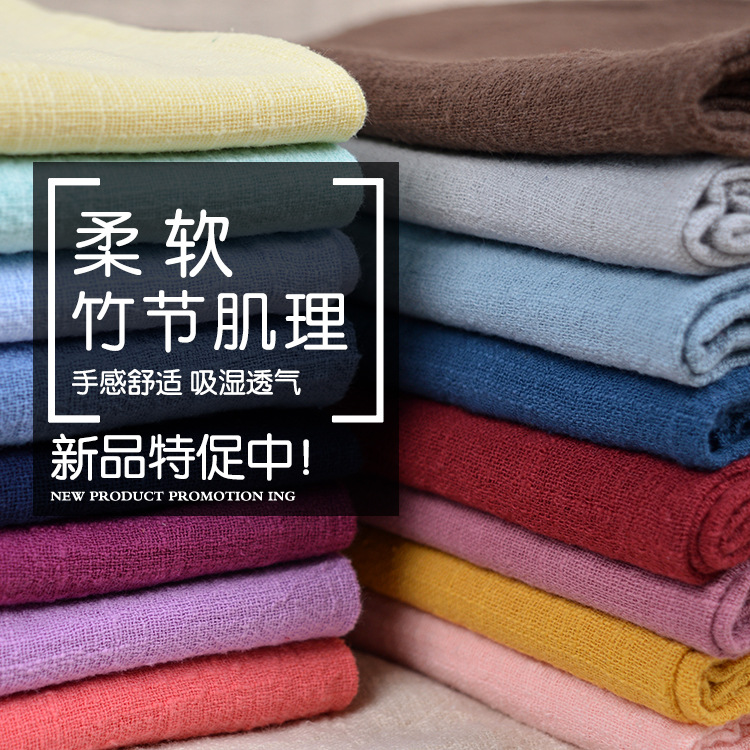 Stok tersedia pasang kain bambu tekstur polos kain katun dan linen musim semi dan musim panas warna solid Hanfu Zen kemeja kain bambu