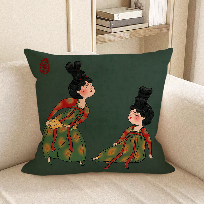Gaya Tiongkok Kuno Yang Guifei Ping An Xi Le Kamar Tidur Dua Sisi Cetak Sofa Ruang Tamu Bantal Guling Persegi Kantor