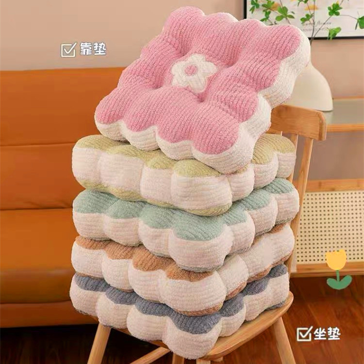 四季通用加厚学生椅子坐垫办公室沙发柔软毛绒垫饼干花骨朵坐垫