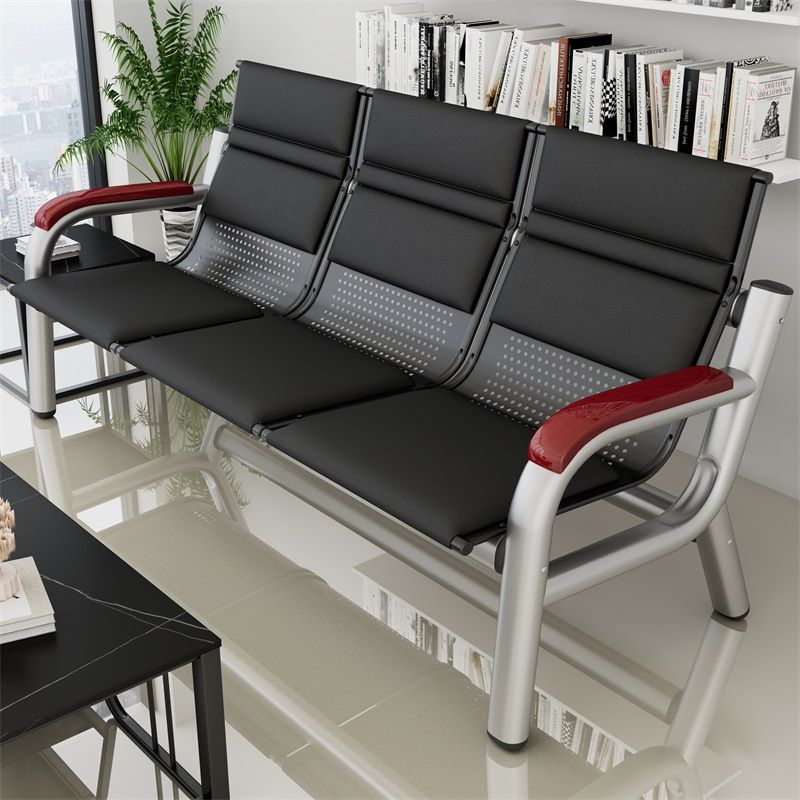 Sofa kulit kantor, setelan kombinasi meja kopi, sofa tiga kursi, ruang resepsi modern, sederhana