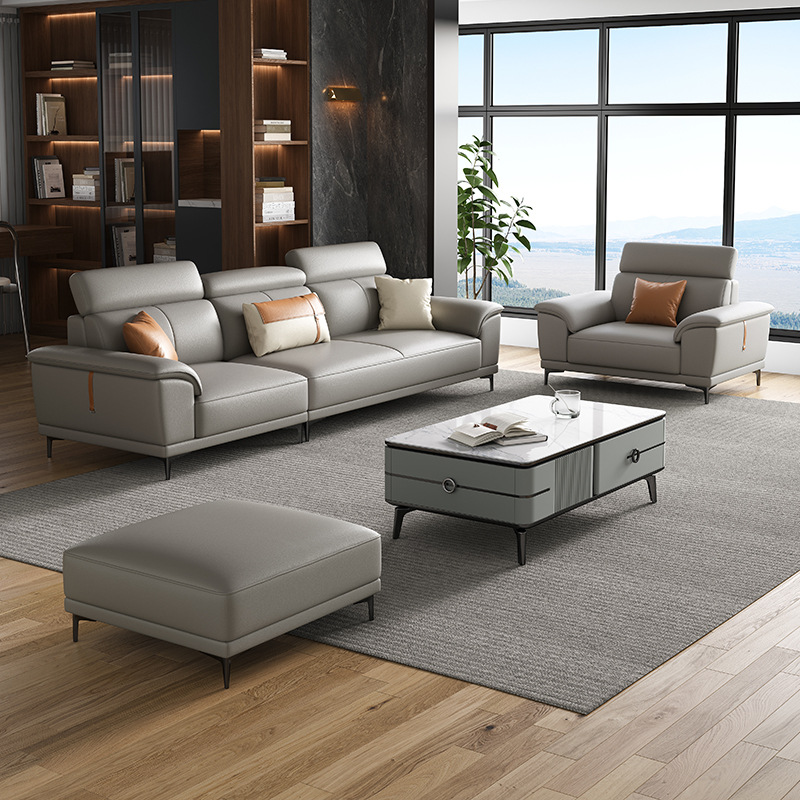 Ruang tamu dengan frekuensi yang sama Rumah Tangga Eropa Utara modern lapisan pertama kulit sapi sofa kulit asli sederhana apartemen kecil tiga orang
