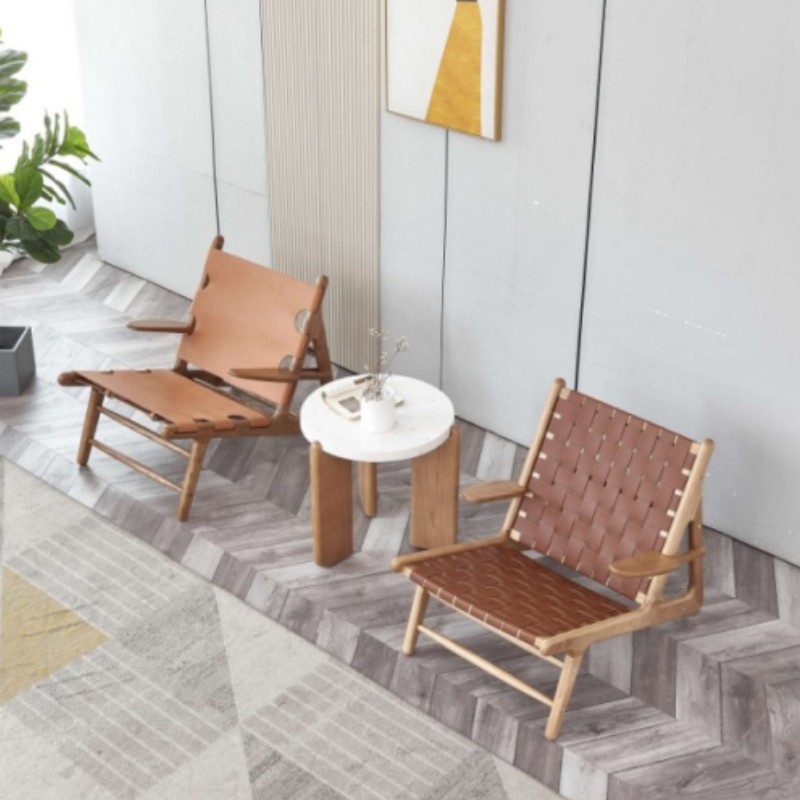 Kursi berburu kulit sadel Nordic, kursi santai kreatif gaya Tiongkok desainer berlengan rumah bisnis