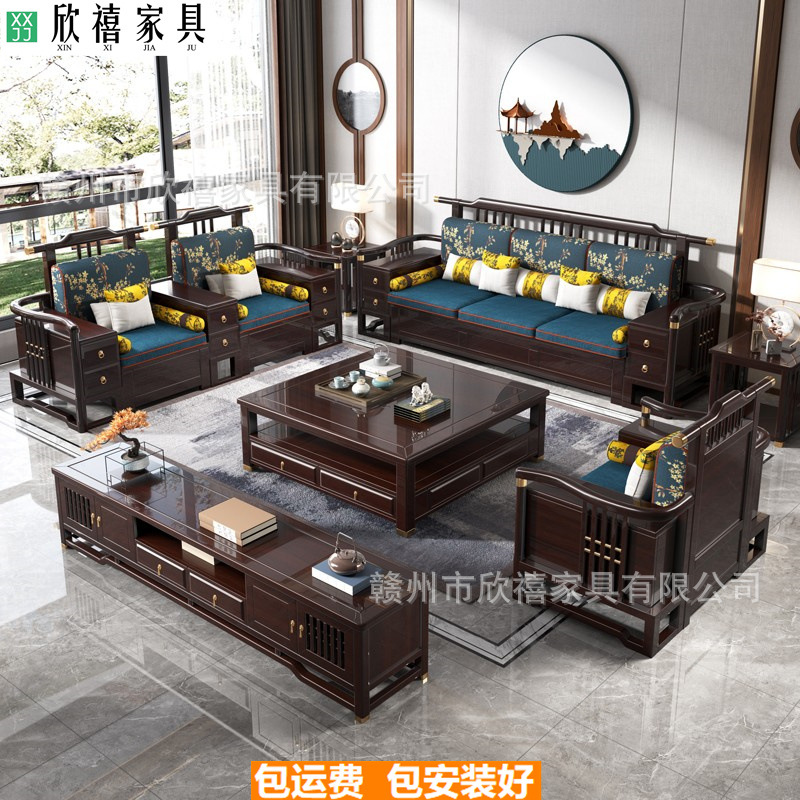 Sofa kayu padat gaya Tiongkok, baru, minimalis modern, gaya Tiongkok, kotak penyimpanan besar, kotak tinggi, kombinasi sofa ruang tamu kayu
