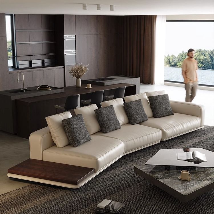 Sofa Kulit Asli Ruang Tamu Sederhana Model Baru 2025 Gaya Italia Sofa Seni Kulit Mewah Kelas Atas Tipe Unit Besar dan Kecil Modern