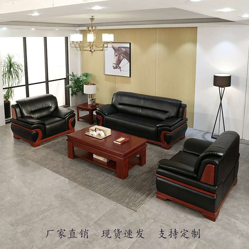 Sofa Kantor Meja Kopi Kombinasi Ruang Pertemuan Bisnis Modern Sederhana Gaya Cina Resepsionis VIP Sofa Tiga Orang Kulit Asli