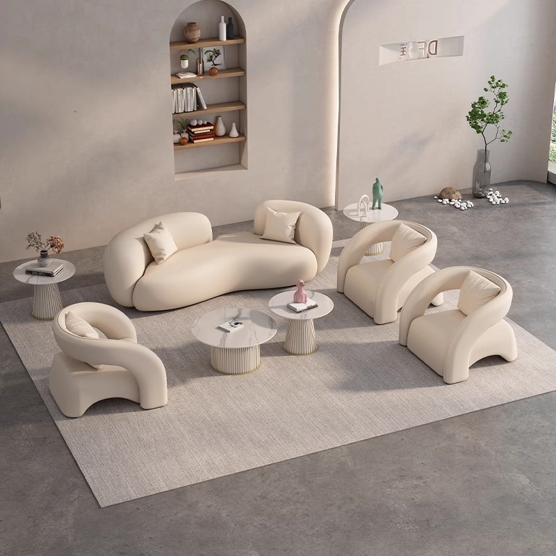 Meja kopi kombinasi gaya krim sofa melengkung pakaian toko Hotel salon kecantikan meja negosiasi Penerimaan komersial dan kursi