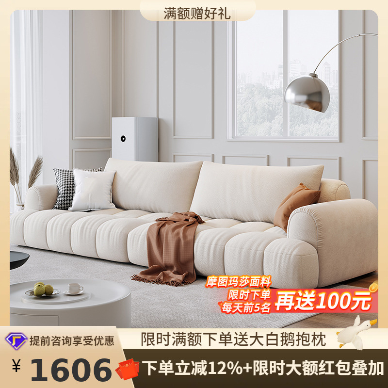 Tongyute sofa kain katun permen, bahan katun goresan kucing gaya Krim Perancis ruang tamu modern minimalis awan