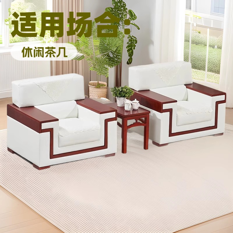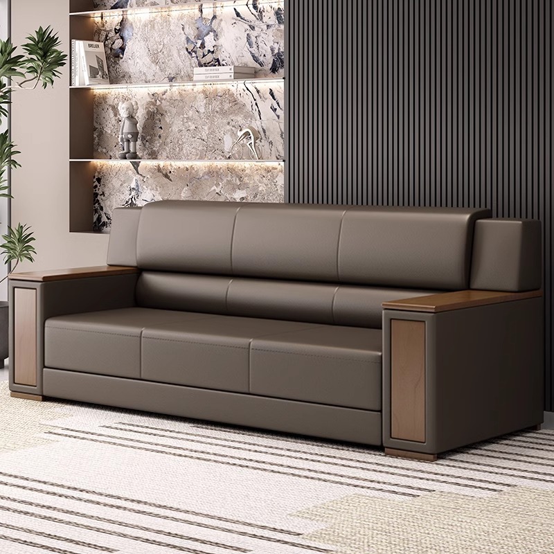 Sofa Kantor Meja Kopi Kombinasi Ruang Pertemuan Bisnis Modern Sederhana Gaya Cina Resepsionis VIP Sofa Tiga Orang Kulit Asli