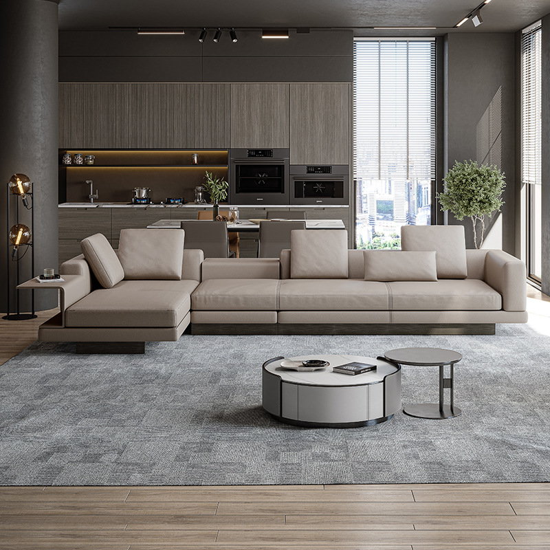 Sofa Kulit Asli Sudut Connery Sofa Kulit Sapi Lapisan Kepala Warna Khaki Model Italia Minimalis Minimalis Ruang Tamu Modern Minimalis