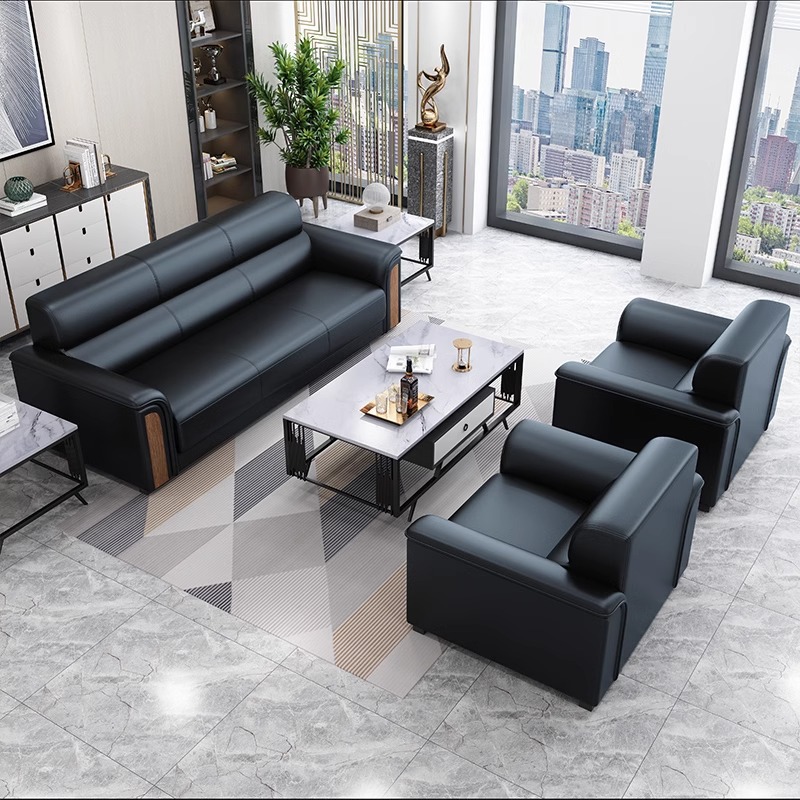 Sofa Kantor Kulit Asli Set Kombinasi Meja Kopi Tiga Orang Santai Resepsi Tamu Bisnis Modern Sederhana Seni Kulit