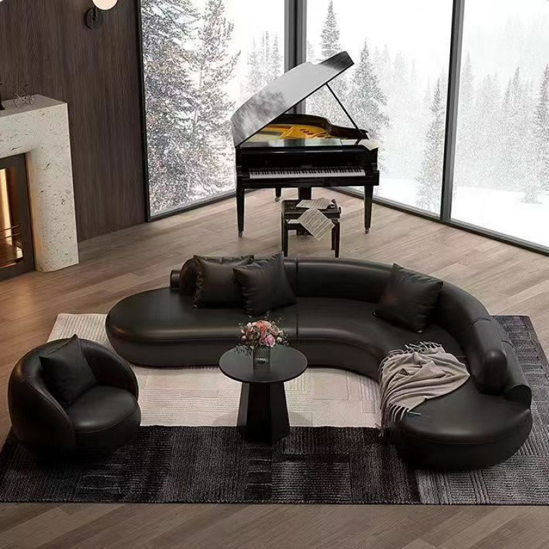Sofa Ruang Tamu Minimalis Gaya Italia Sofa Kulit Asli Baris Lurus Sofa Seni Kulit Kombinasi Sederhana Modern Beruang Hitam Sofa Kecil