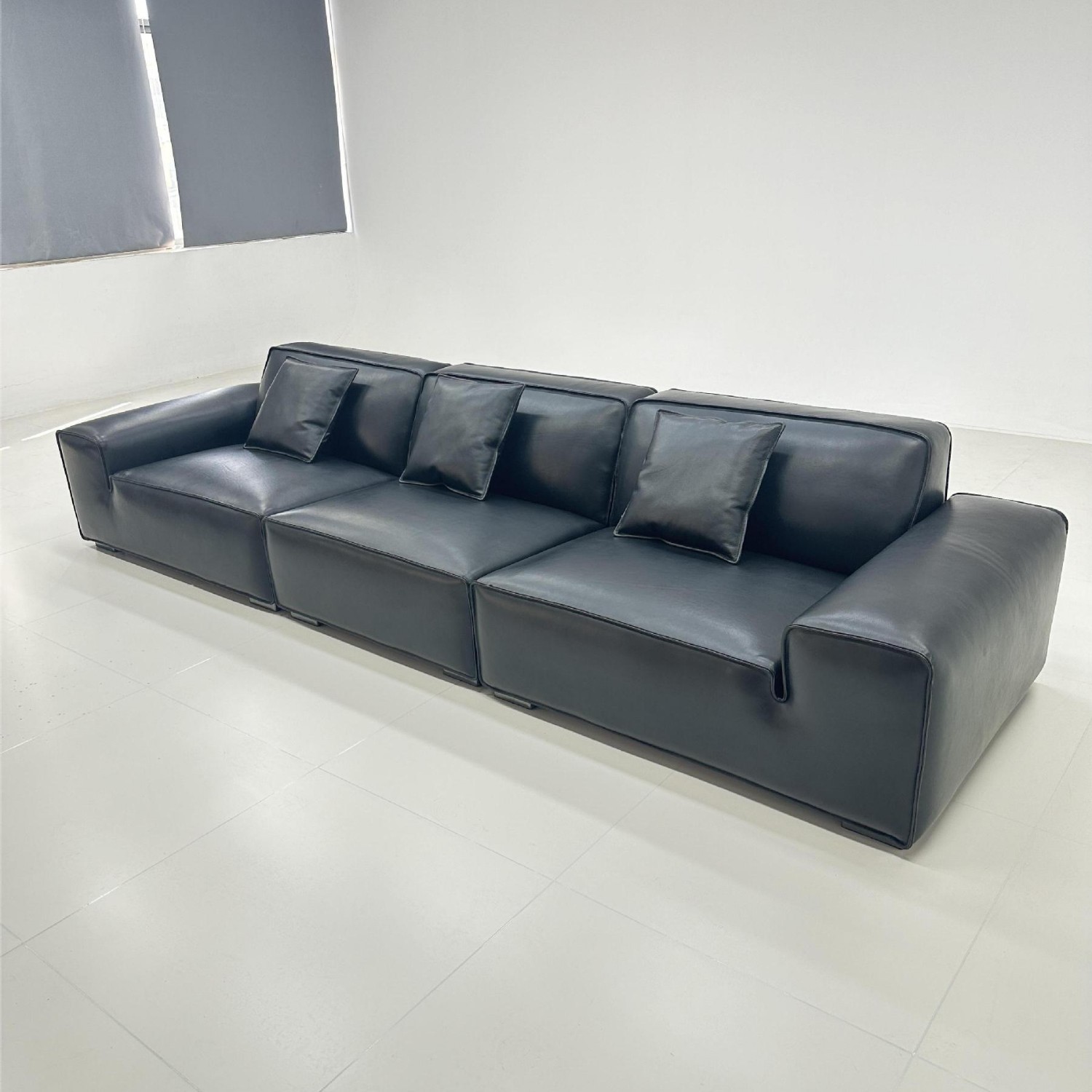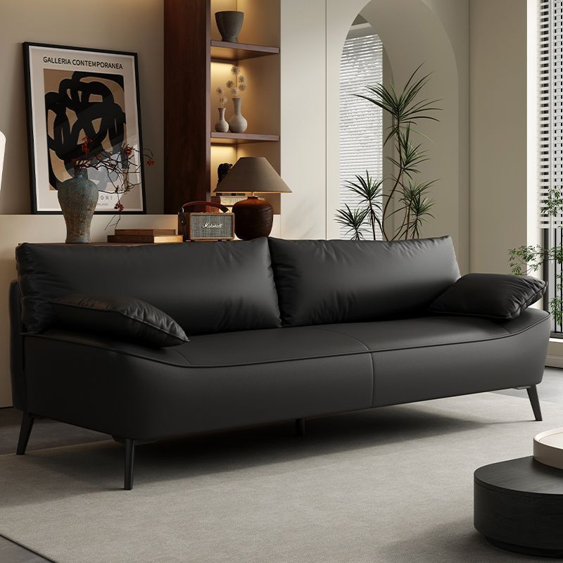 Sofa Sapi Hitam Besar Minimalis Gaya Italia Sofa Kulit Sapi Kulit Asli Lapisan Kecil Tipe Apartemen Sofa Kain Matte Sofa Ruang Tamu