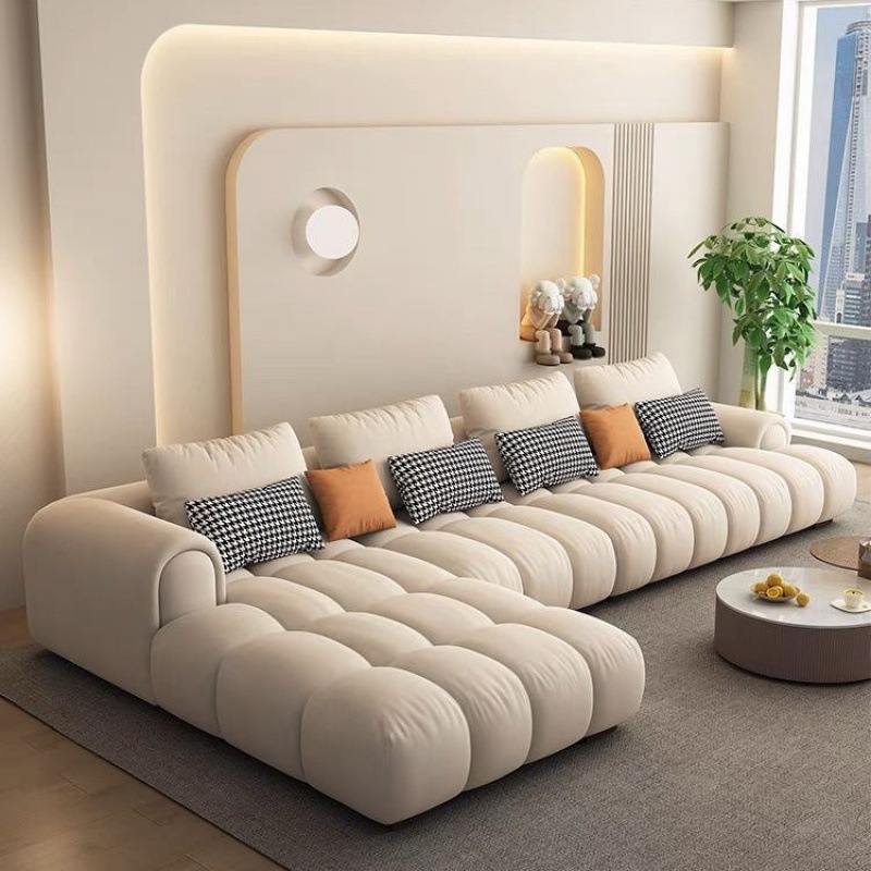 Gaya Krim Sederhana dan Sederhana Gaya Rumah Ukuran Besar dan Kecil Sudut Lurus Kain Kucing Cakar Awan Sofa Tahu Blok Lateks Ruang Tamu Duduk Besar