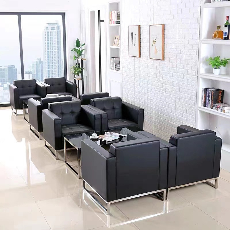 Sofa tunggal hitam perusahaan ruang tamu kulit barat sofa kecil kantor penerimaan sofa meja kopi kombinasi