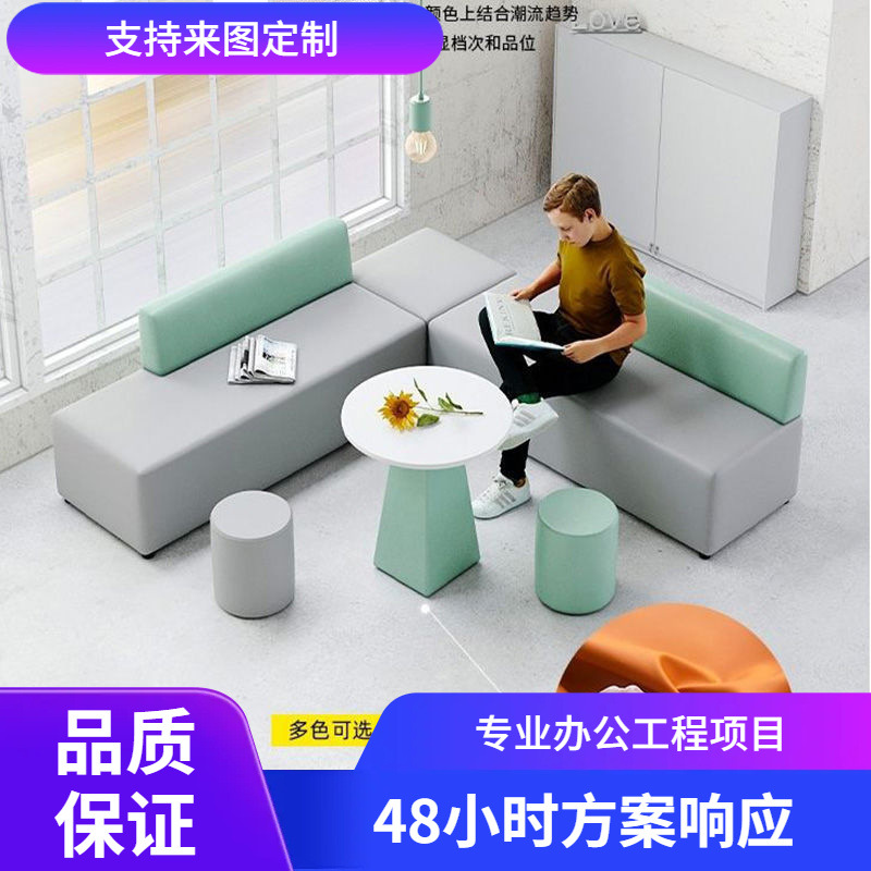 Sofa penerimaan kantor, aula sederhana Pelatihan kreatif lembaga menunggu area sandaran santai sofa meja kopi kombinasi