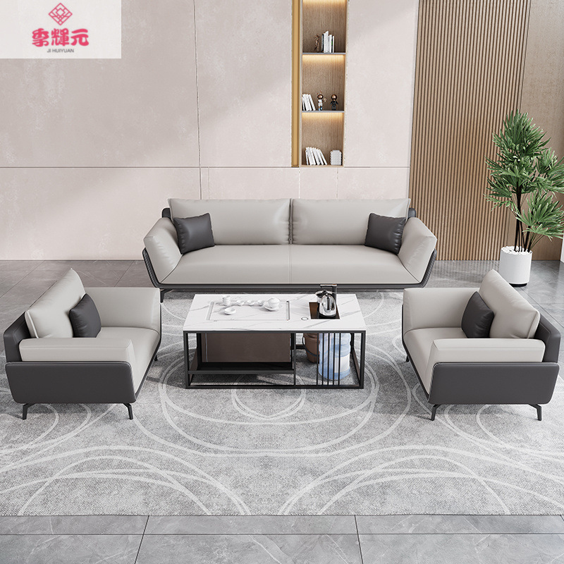Sofa Kantor Set Meja Kopi Kulit Kucing Bisnis Kantor Kecil Tiga Orang Penerimaan Tamu Sederhana Modern