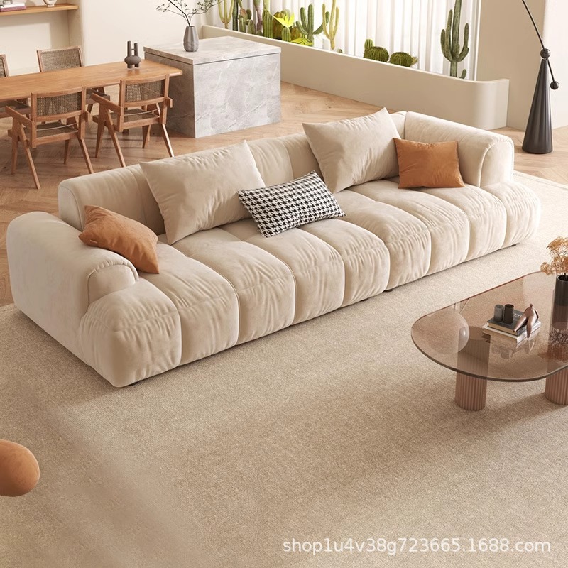 Sofa Awan Krim Sofa Kain Matte Lembut Deretan Lurus Dalam Duduk Super Lebar Ruang Tamu Unit Kecil Minimalis Minimalis Modern