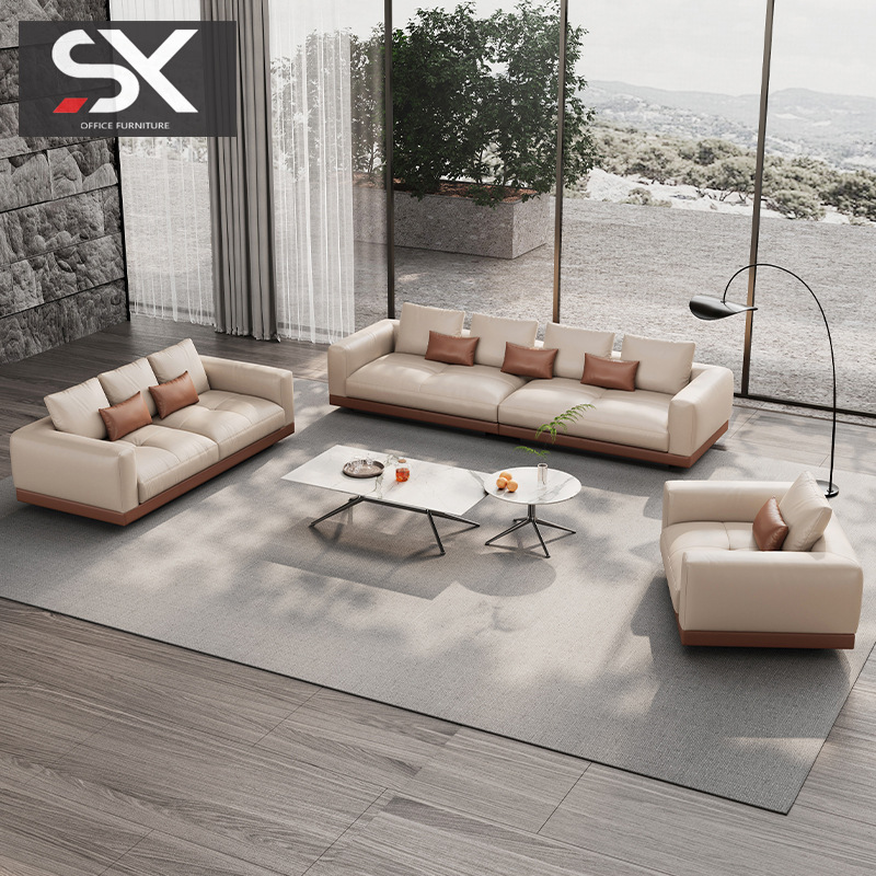 Sofa Kantor Set Meja Kopi Sofa Kantor Kulit Asli Kasual Kelas Atas Penerimaan Ruang Tamu Modern Sederhana Bisnis