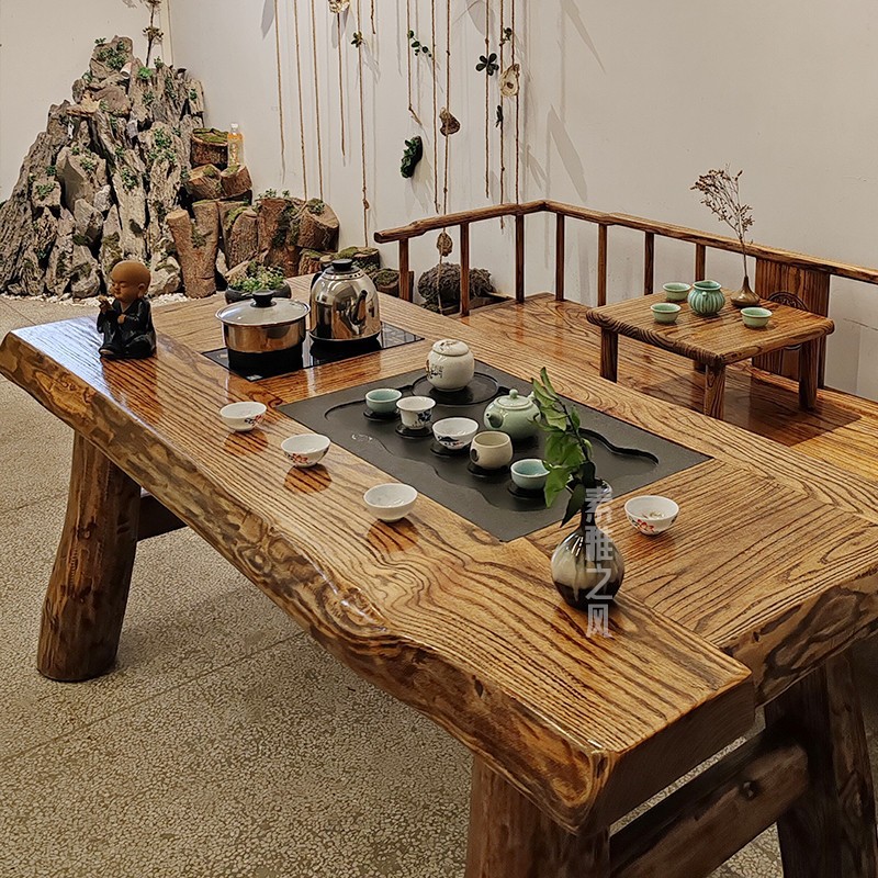 2024 Model Baru Set Set Meja Meja Teh Sofa Kayu Bundar Gaya Diam Meja Teh Meja Kantor Set Teh Set Set Teh Ruang Teh