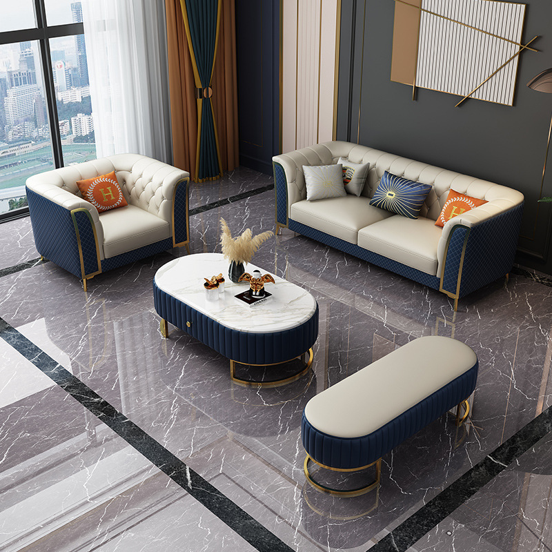 Sofa kulit, perabotan sofa kombinasi Vila Hotel klub apartemen Modern, kain mewah ringan