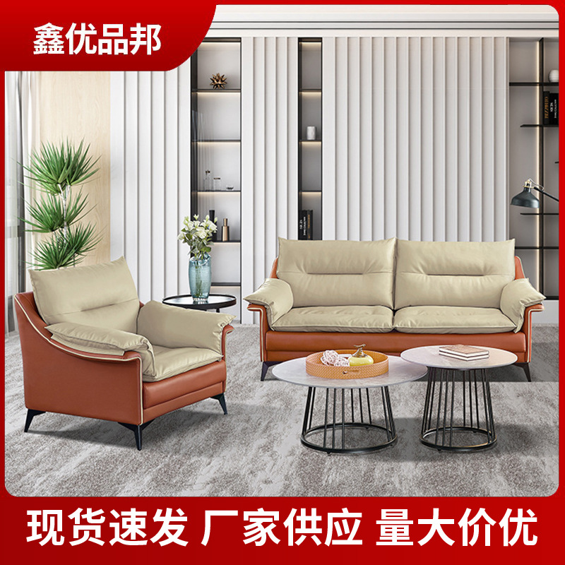 Sofa Kantor Bisnis Meja Kopi Kombinasi Sederhana Sofa Penerimaan Tamu Kantor Modern Sofa Kulit Asli Tiga Kursi