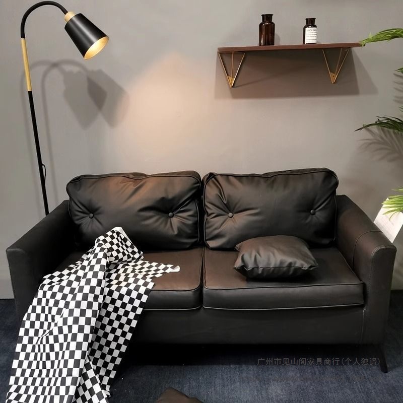 Sofa Apartemen Kecil Rumah Sewa Kantor Toko Pakaian Area Duduk Resepsionis Sofa Kulit Hitam Tiga Orang Ruang Tamu