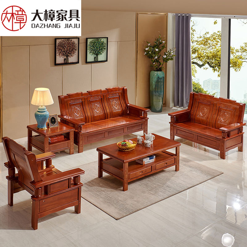 Kombinasi sofa gaya Tiongkok baru apartemen kecil musim dingin dan musim panas penggunaan ganda sofa antik kayu solid ruang tamu kantor pedesaan ekonomis
