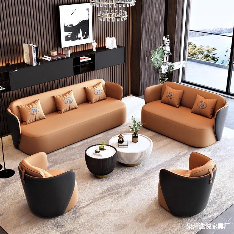 Sofa Kantor Bos Gaya Italia Ringan Mewah Kelas Atas Negosiasi Tamu Sofa Meja Kopi Set Kombinasi Tiga Orang
