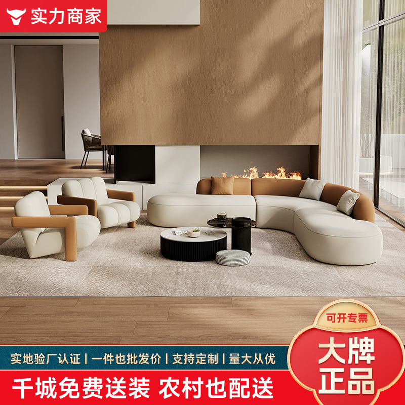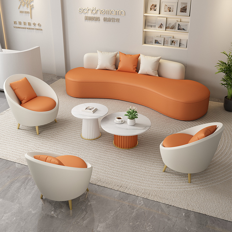 Sofa toko pakaian sofa Nordic kecil apartemen penjualan ruang tamu area sandaran kantor teknologi penerimaan Kulit melengkung sofa kantor