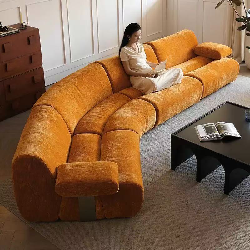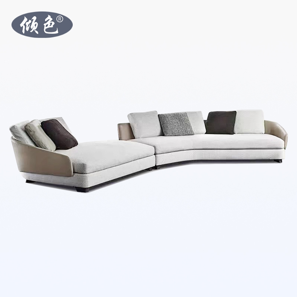Sofa replika laosen Italia, sofa baris lurus melengkung desainer besar dan kecil apartemen besar ruang tamu datar kain