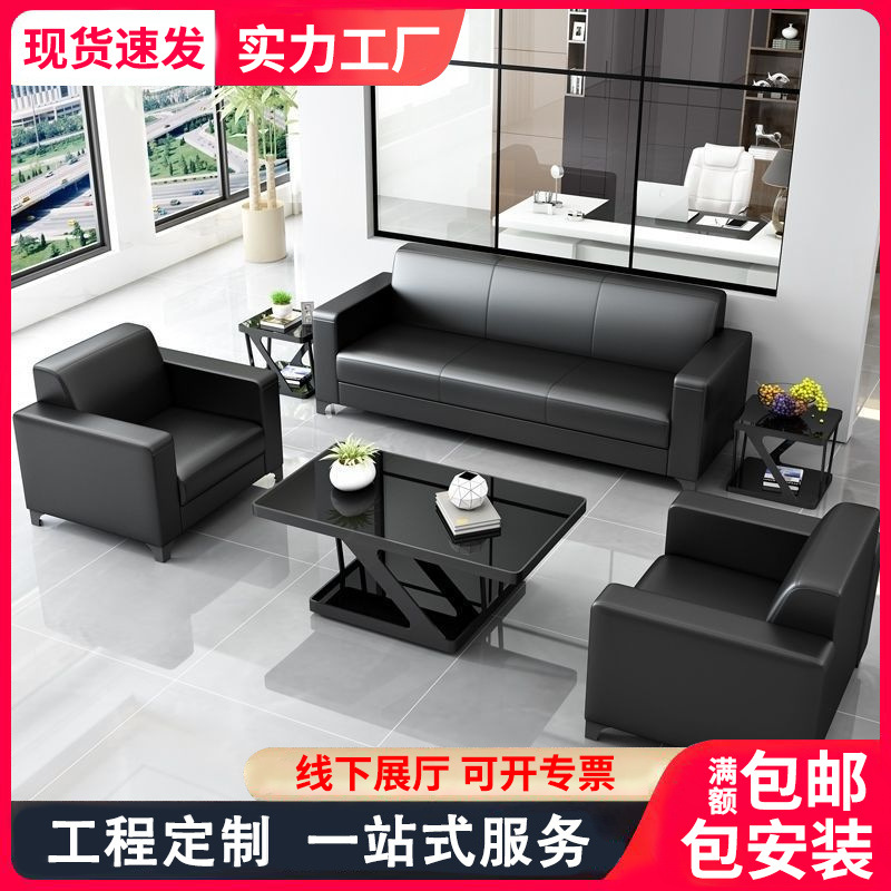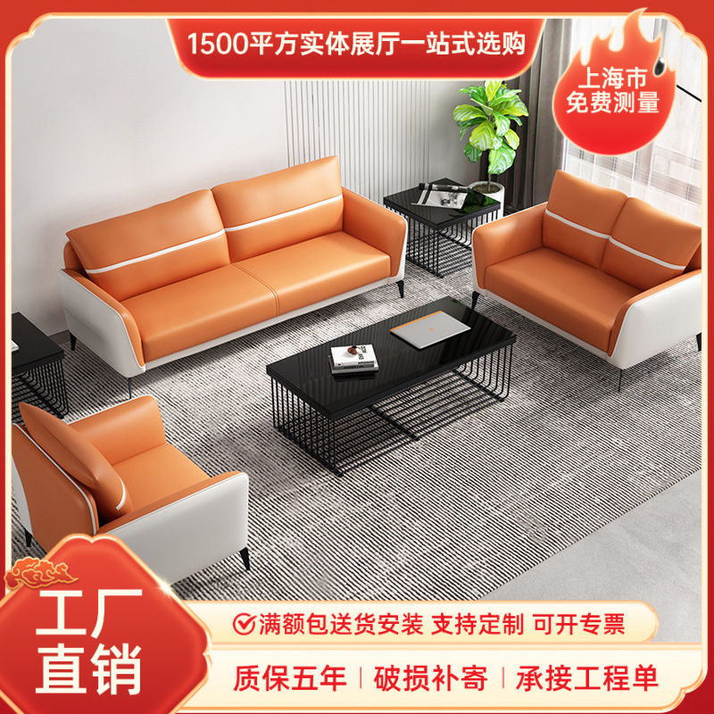 Sofa kantor meja kopi kombinasi modern minimalis bisnis penerimaan tamu kecil kulit kantor sofa tiga kursi