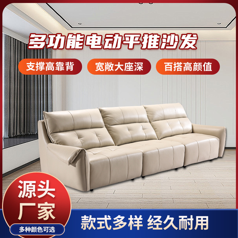 Yunjin Tempat Tidur Sofa Multi Fungsi Sofa Kulit Asli Sederhana Dorong Datar Listrik Lapisan Atas Kulit Sapi Kombinasi Sofa Baris Datar