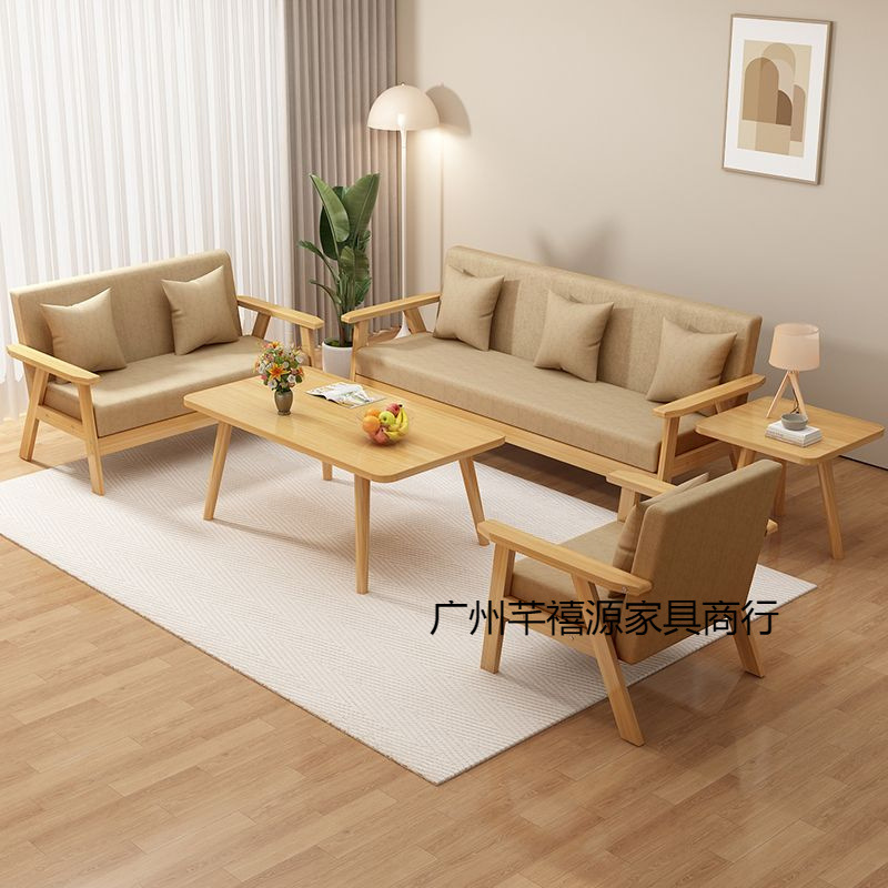 Sofa Kain Kombinasi Meja Kopi Kamar Tidur Rumah Sewa Model Baru Sofa Kayu Solid Pernis Sofa Sederhana Dua Orang Kantor