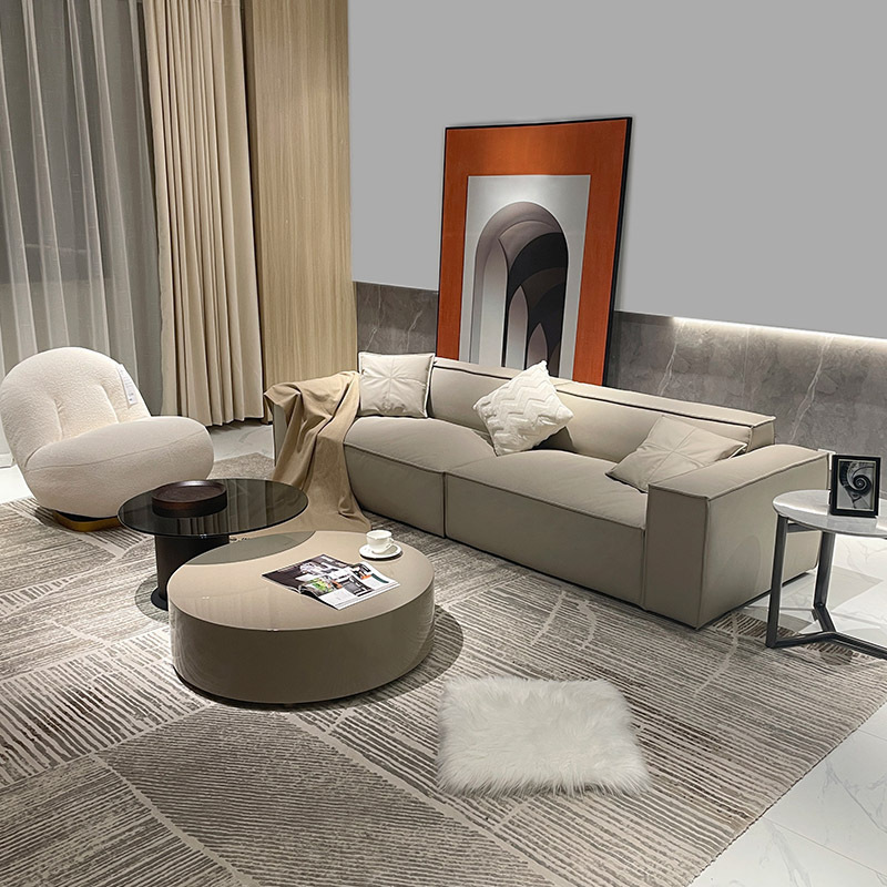 Sofa Kombinasi Tipe Unit Besar dan Kecil di Kedua Sisi Gaya Baru Lawrence Kelas Atas Sofa Seni Kulit Lurus