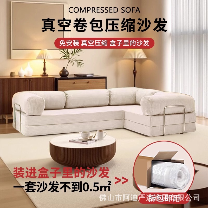 Kombinasi Modul Sofa Kompresi Vakum Blok Tahu Spons Penuh Banyak Orang Lipat dan Cuci Sofa Ranjang Retro Korduroi