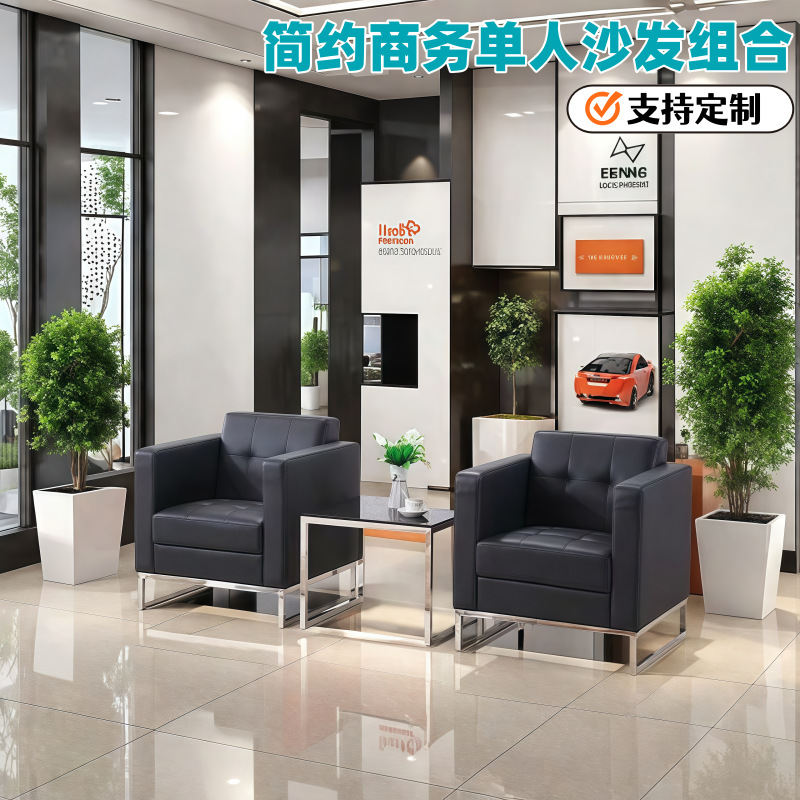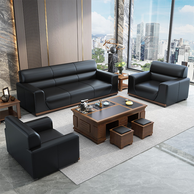 Sofa kantor kulit boss, kombinasi meja kopi sederhana modern bisnis penerimaan area santai sofa kantor