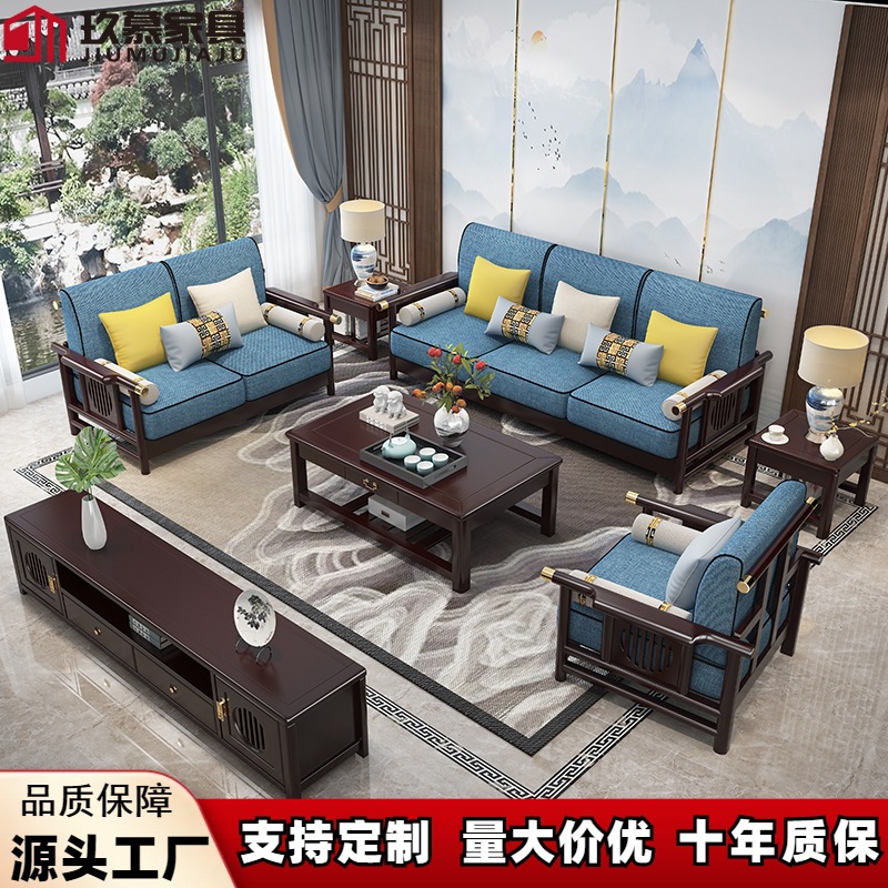 Set sofa kayu solid bergaya Cina untuk apartemen besar dan kecil, furnitur multifungsi untuk kantor dan hotel, sofa ruang tamu, serbaguna.