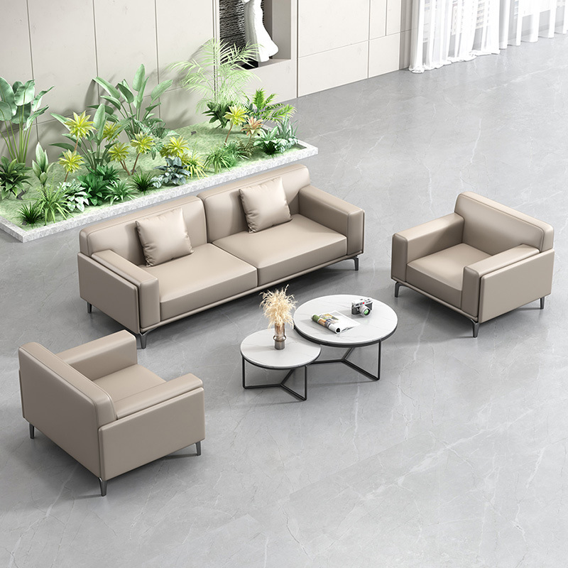 Sofa kantor kulit sederhana ruang resepsi bisnis, area santai sofa kantor meja kopi kombinasi tiga kursi