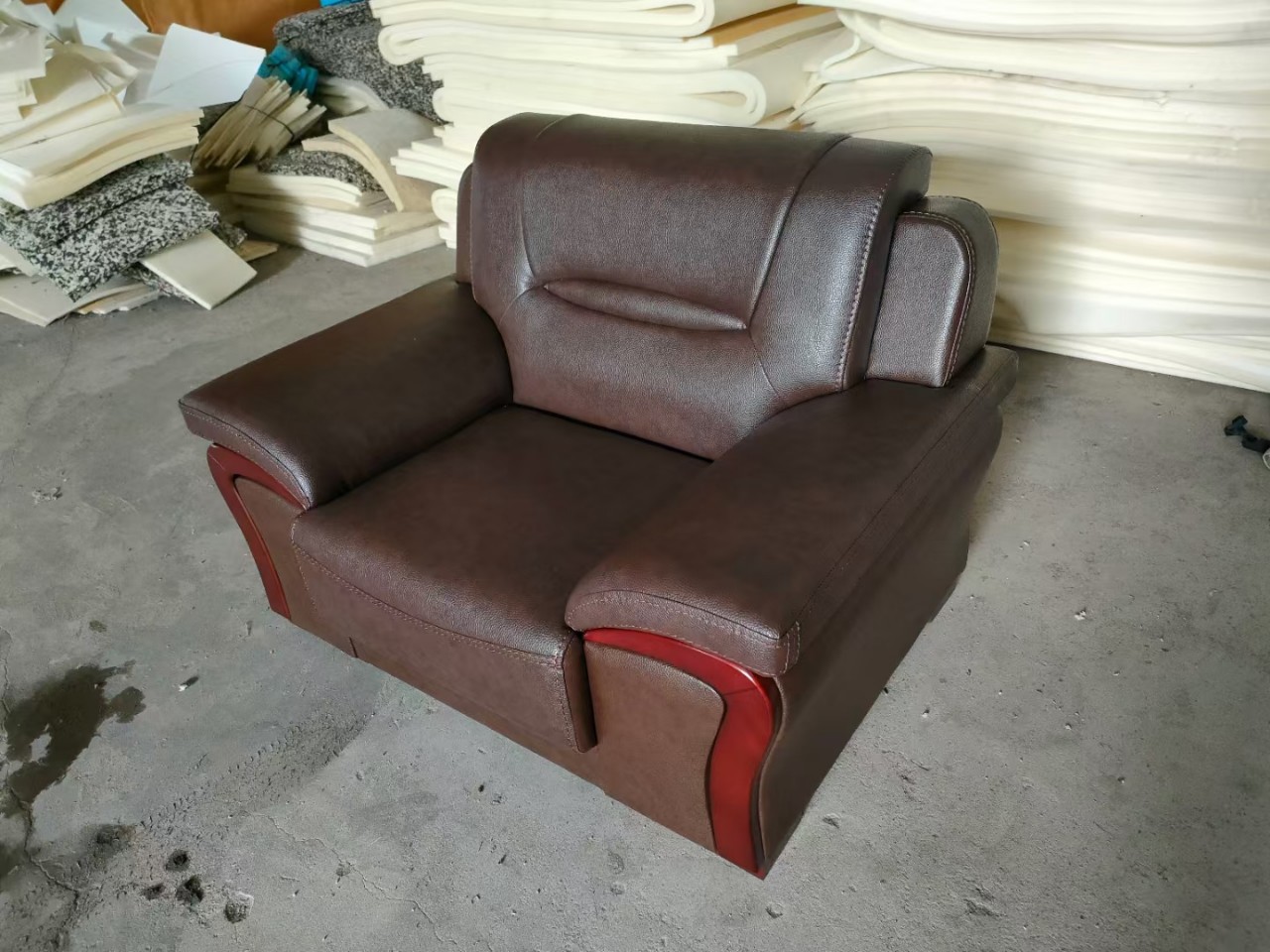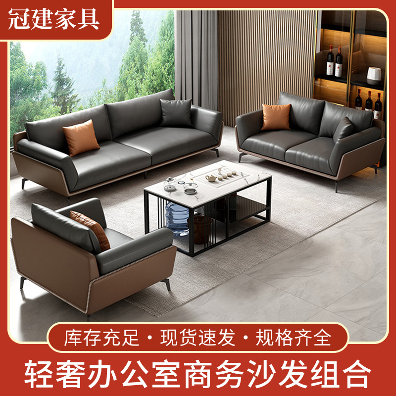 Sofa tiga kursi kantor, setelan sofa kantor sederhana kasual elegan manajer penerimaan bisnis kulit