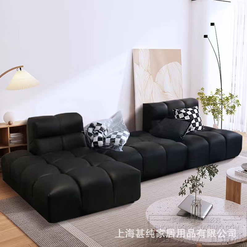Dylan sofa kulit sapi lapisan pertama, desainer kombinasi mewah ringan sofa ruang tamu minimalis Italia hitam kulit sapi lapisan pertama