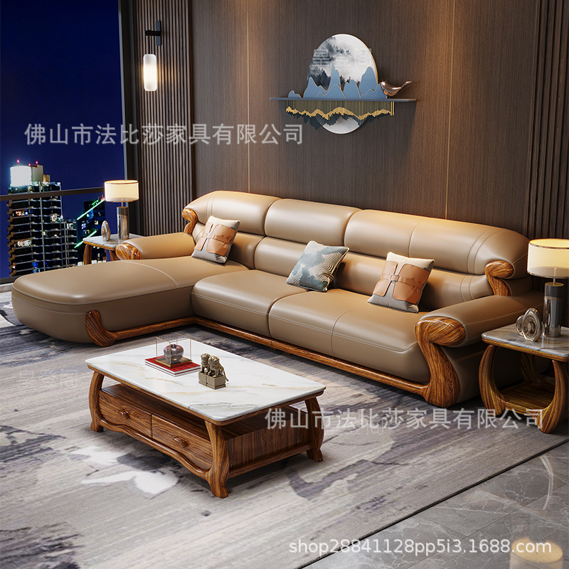 Gaya Tiongkok Baru Kayu Wujin Kulit Asli Sofa Sudut Kayu Solid Gaya Eropa Villa Ruang Tamu Mewah Lapisan Kepala Kulit Sapi Selir Kayu Solid
