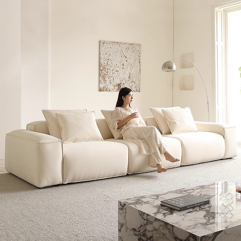 Sofa minimalis Modern, sofa kain minimalis Italia ruang tamu blok tahu putih baru 2024
